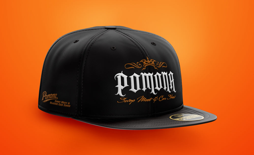 The Rollin Low New Era 9FIFTY Snapback is all black and features an embroidered Pomona logo on the front that matches our popular Rollin Low T-Shirt. The Pomona Swap Meet logo is embroidered small on the right side. This quality hat features an adjustable snapback closure at the rear.